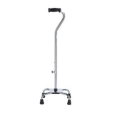 This small base quad cane by Drive Medical features the style and added support you need for everyday life. The four point base provides additional stability compared to traditional single point canes. This small base is ideal for active users who need additional assistance when climbing stairs. The triangular padded hand grip is ergonomically designed for comfort and to reduce stress that may be experienced by the user's hand. The handle height is adjustable from 30" to 39" allowing for custom sizing. Thanks to a Tab-Lock silencer, rattling is prevented and locks the cane's height giving you added peace of mind. The cane is manufactured with an aluminum shaft and a steel base to perfectly balance safety with durability.