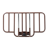 Safe and easy to install, this half rail by Drive Medical was designed specifically to comply as part of the FDA Hospital Bed System Dimensional and Assessment Guidance to Reduce Entrapment. Its width adjusts tool free in 2" increments from 36" to 42" and fits most beds with a steel frame. It is ideal for protection when bed is elevated but not for use with "Pan-Style" bed surfaces. These half rails are constructed of 1" steel and finished in an attractive brown vein.